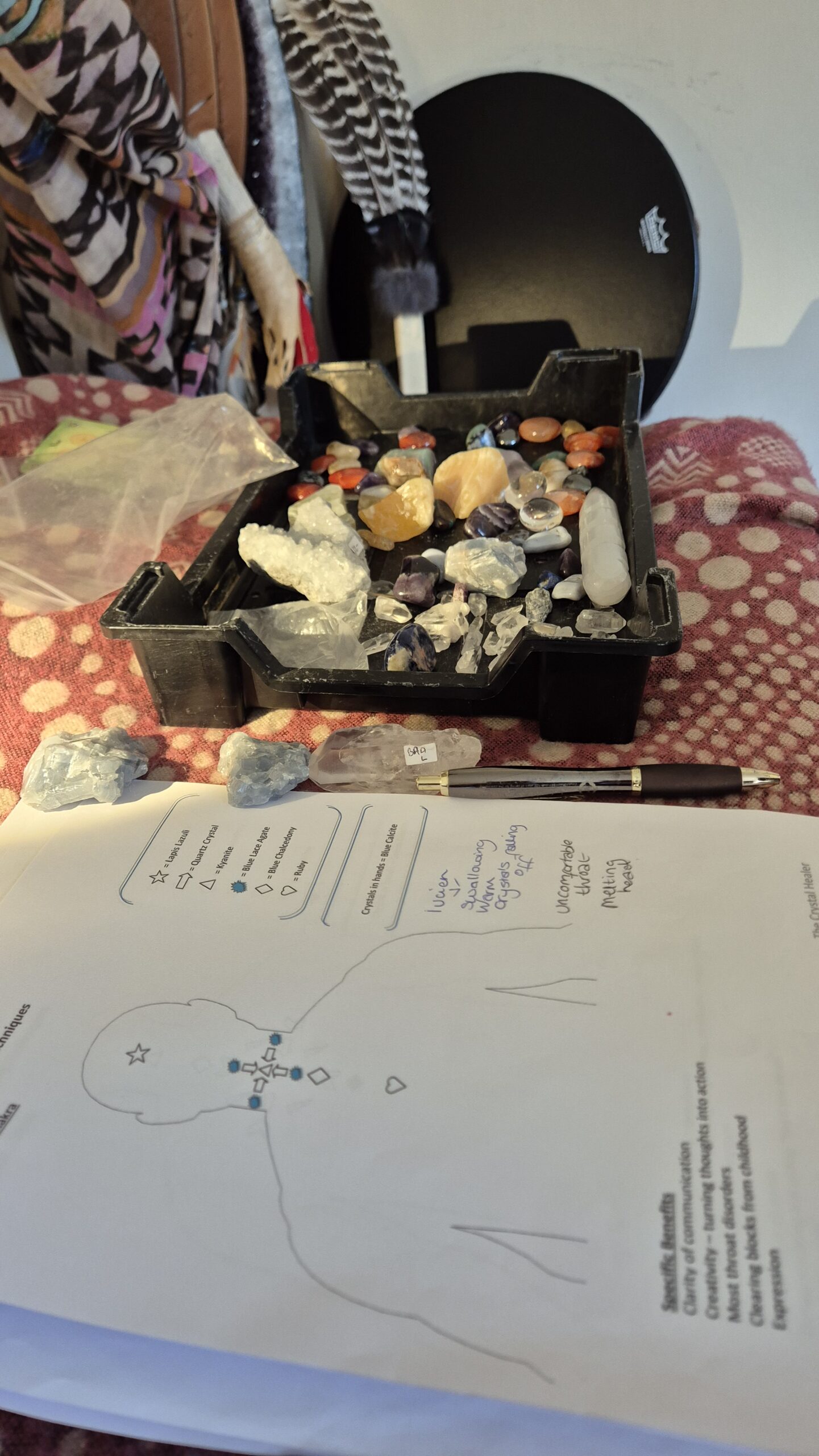 How to work with crystals part 3, Laying on of stones, 17 point treatment plan, greeting, consent forms, what does the client need? Free-crystal, body gridding, quartz stars, amethyst trails, brushing aura, sealing aura